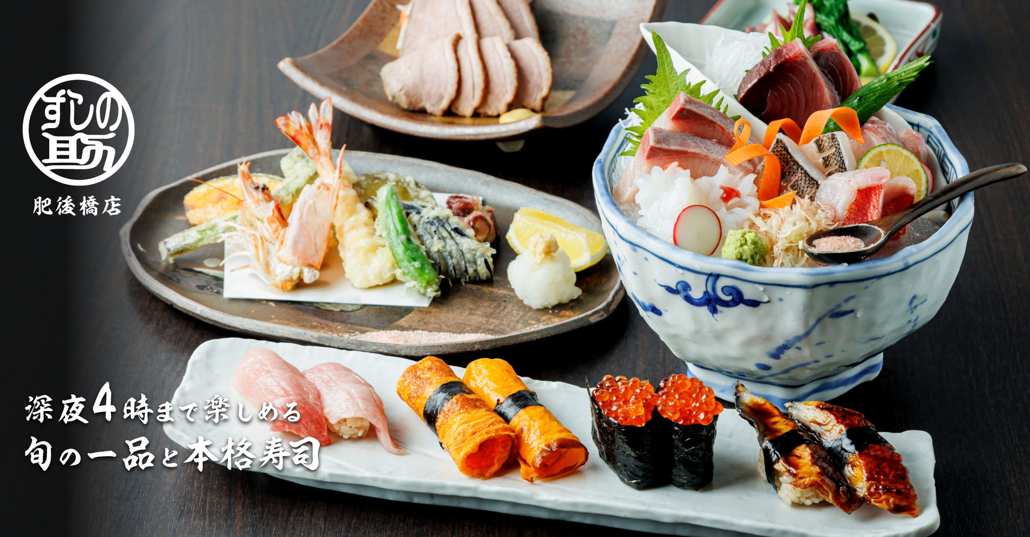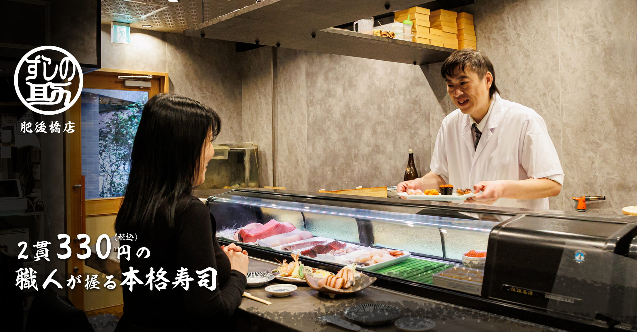 大阪・肥後橋にある「すしの助 肥後橋店」では、職人が握る本格寿司を、ひと皿2貫330円(税込)でご提供しています。小ぶりのシャリは口に運びやすく、さまざまなネタを気軽に味わえるのも魅力です。旬の握りや一品料理は、お酒と合わせてゆっくりとお愉しみください。落ち着いた空間は、仕事帰りのお食事やご家族での集まり、海外からお越しのお客様まで、幅広いシーンに対応。翌朝4時まで営業しておりますので、遅めのお食事にも便利な一軒です。
