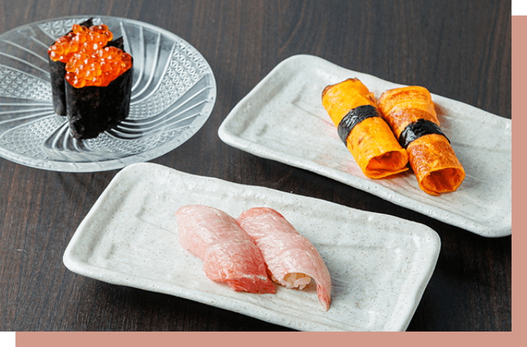握りは、小ぶりで食べやすい“こまシャリ”が特長です。さまざまな種類を味わいたい方にもぴったり。赤酢で仕込んだシャリは、すっきりとした酸味で魚の旨みを引き立て、後味まで軽やかに仕上げます。なかには、思わず「この値段でこの品質?」と驚かれるようなネタも、同じ価格でご提供しています。