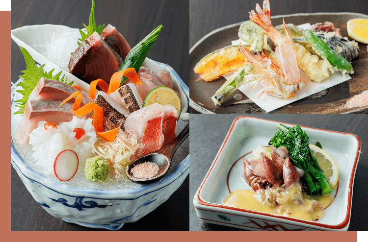 初めてのお客様は『おまかせお造り盛り合わせ』がおすすめ。その日の仕入れから職人が“今いちばん”を選び抜き、一皿に盛り込みます。地酒や焼酎などとも相性抜群。『天ぷらの盛り合わせ』や日替わりの季節料理も揃い、訪れるたびに新しい味に出会えます。