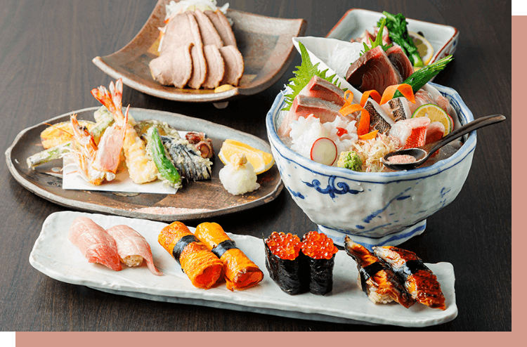 気の合う仲間との宴席や、特別な日のお集まりにふさわしいコースを4,950円(税込)からご用意しております。お造りや握り、一品料理を、その日の旬を織り交ぜながらご提供。さらに、+1,650円(税込)で飲み放題もお付けできます。ご予算に応じたご相談も承っておりますので、どうぞお気軽にお問い合わせください。