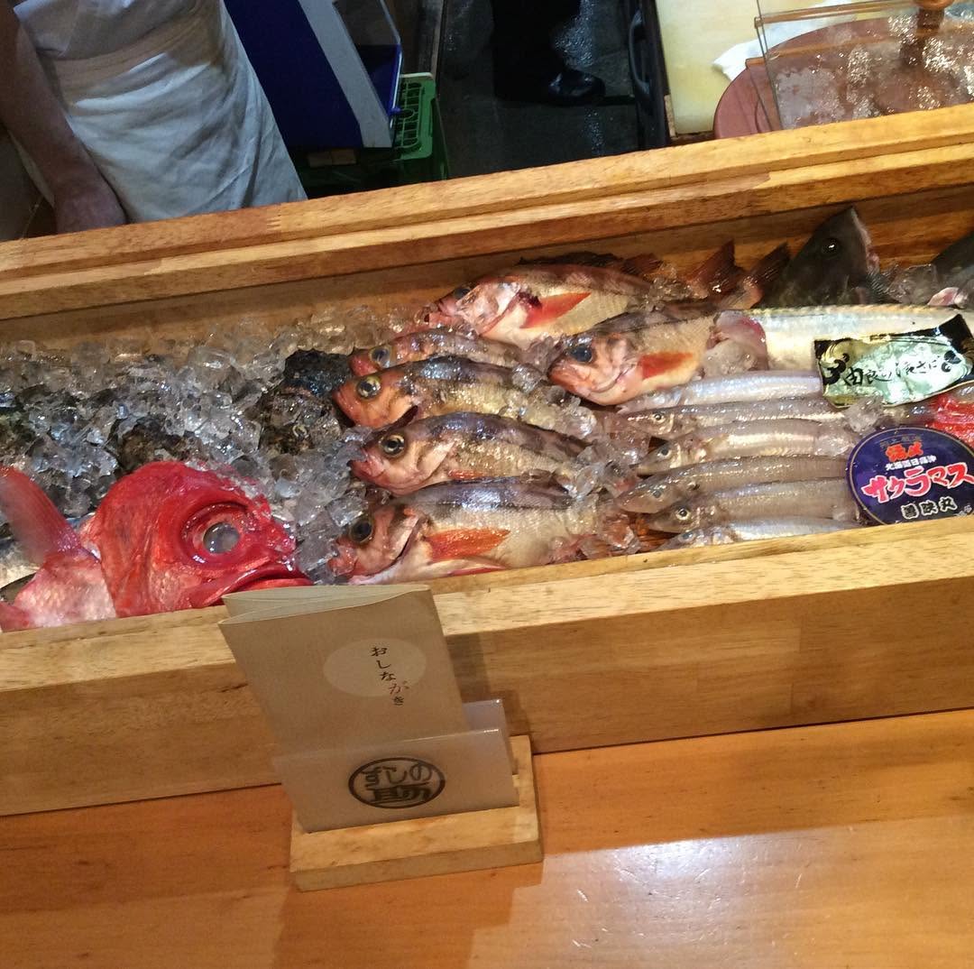 カッコいいーお魚と貝が水槽でお待ちしておりますϵ( ‘Θ’ )϶ #すし